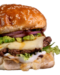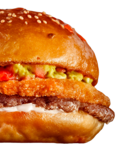 CRISPYRebozado, muzzarella, guacamole, cebolla frita. Medallón de carne de 150gr.S/PAPAS$11.500C/PAPAS$12.500