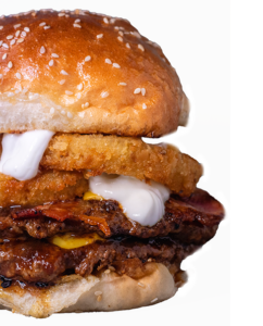 ONIONPanceta ahumada, queso cheddar, aros de cebolla y BBQ. Medallón de carne de 150gr.S/PAPAS$10.900C/PAPAS$11.900